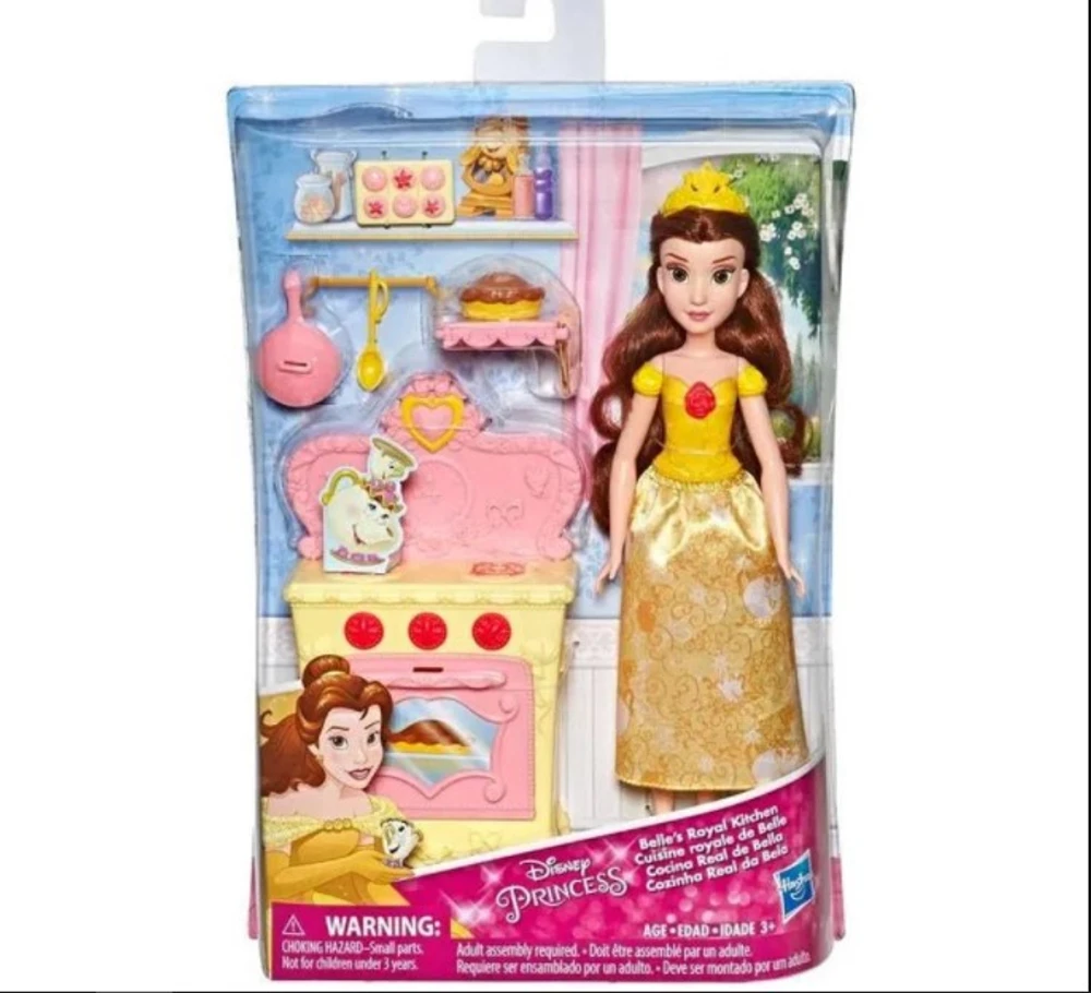 As crianças podem se imaginar se juntando a Bella para fazer guloseimas para seus amigos com este delicioso jogo da Cozinha Real. Este conjunto inclui um fogão com uma porta de forno que abre e fecha, uma boneca Belle vestindo uma saia de tecido inspirada em seu estilo de filme icônico, um par de sapatos e acessórios de cozinha como uma torta, panela, toalha e tiara. Porque quem não usa uma tiara quando cozinha?