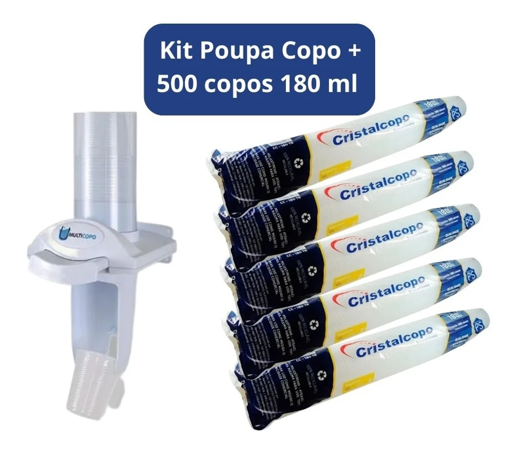 Kit composto por 01 und dispenser poupa copo + 05 pcts de copos 180 ml ( 500 und de copo)Dispenser Poupador de Copos Descartáveis de Água Multicopo Branco NobreSe você busca economia de copos plásticos, está na hora de pensar em adquirir este dispenser para copos, ele ajudará a reduzir o seu custo e aumentará sua economia.Acionado por botão, com sistema de clique único, ele ativa pequenas engrenagens que fazem a separação e geram a divisão perfeita dos copos armazenados no tubo dispensando apenas um único copo.Prático, econômico e higiênico, o porta copos descartáveis Multicopo tem tamanho compacto e aparência discreta que não polui o ambiente.Super resistente: Produzido em polietileno de alta qualidade com tubo rígido sem emendas para armazenamento dos copos.Pode ser fixado à parede por parafusos e buchas (já inclusos) ou por fita dupla face.CARACTERÍSTICAS TÉCNICAS:Compatibilidade: Copos de 150ml até 200ml.Capacidade do Tubo: Até 100 copos.Dimensões: 15cm x 58cm x 19cm (CxAxL)