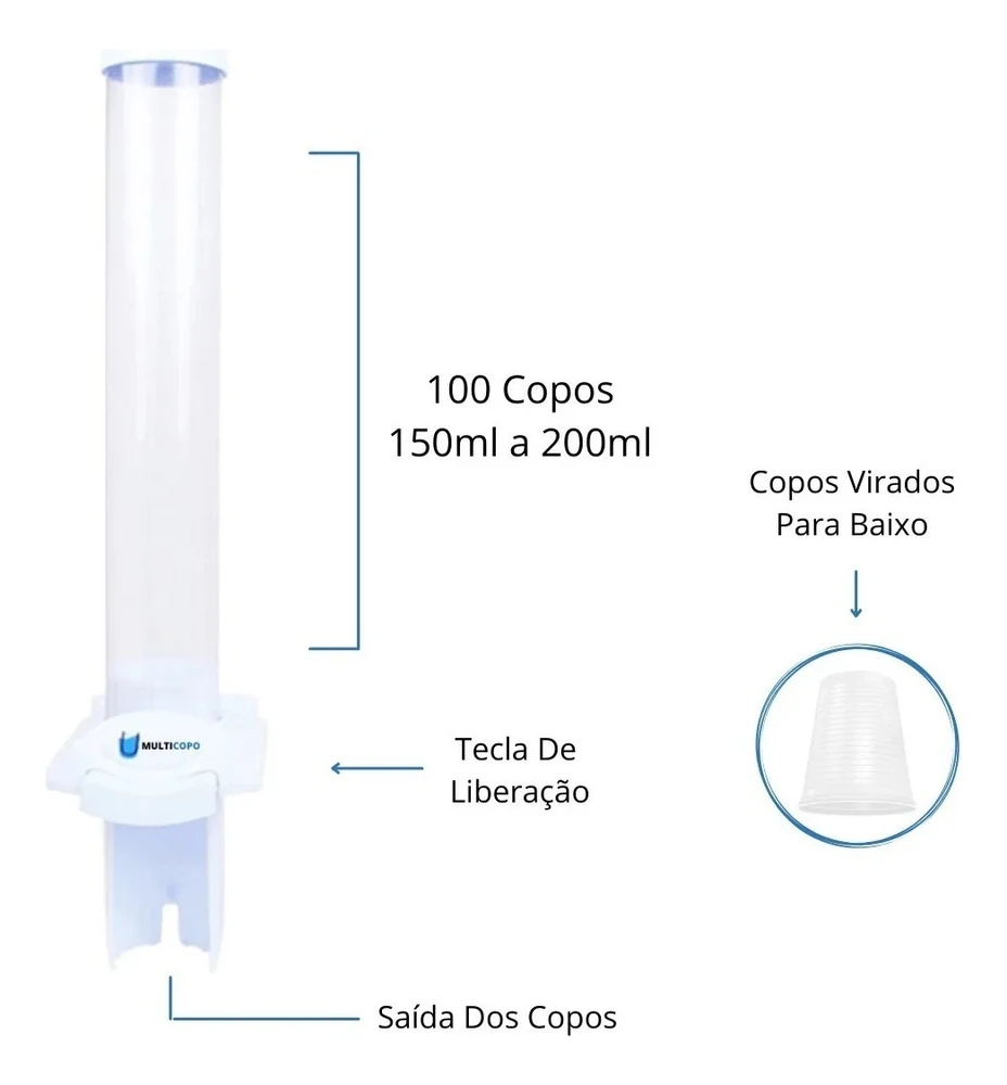 Este produto é Mercado Envios, conte com entrega imediata e ultra rápida!Dispenser Poupador de Copos Descartáveis de Água Multicopo Branco NobreSe você busca economia de copos plásticos, está na hora de pensar em adquirir este dispenser para copos, ele ajudará a reduzir o seu custo e aumentará sua economia.Acionado por botão, com sistema de clique único, ele ativa pequenas engrenagens que fazem a separação e geram a divisão perfeita dos copos armazenados no tubo dispensando apenas um único copo.Prático, econômico e higiênico, o porta copos descartáveis Multicopo tem tamanho compacto e aparência discreta que não polui o ambiente.Super resistente: Produzido em polietileno de alta qualidade com tubo rígido sem emendas para armazenamento dos copos.Pode ser fixado à parede por parafusos e buchas (já inclusos) ou por fita dupla face.CARACTERÍSTICAS TÉCNICAS:Compatibilidade: Copos de 150ml até 200ml.Capacidade do Tubo: Até 100 copos.Dimensões: 15cm x 58cm x 19cm (CxAxL)