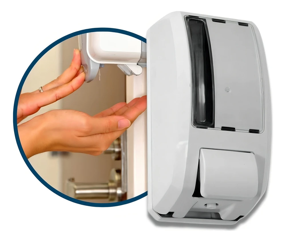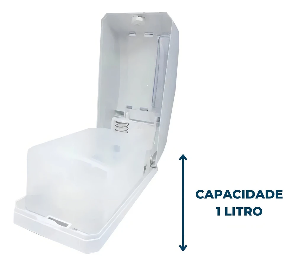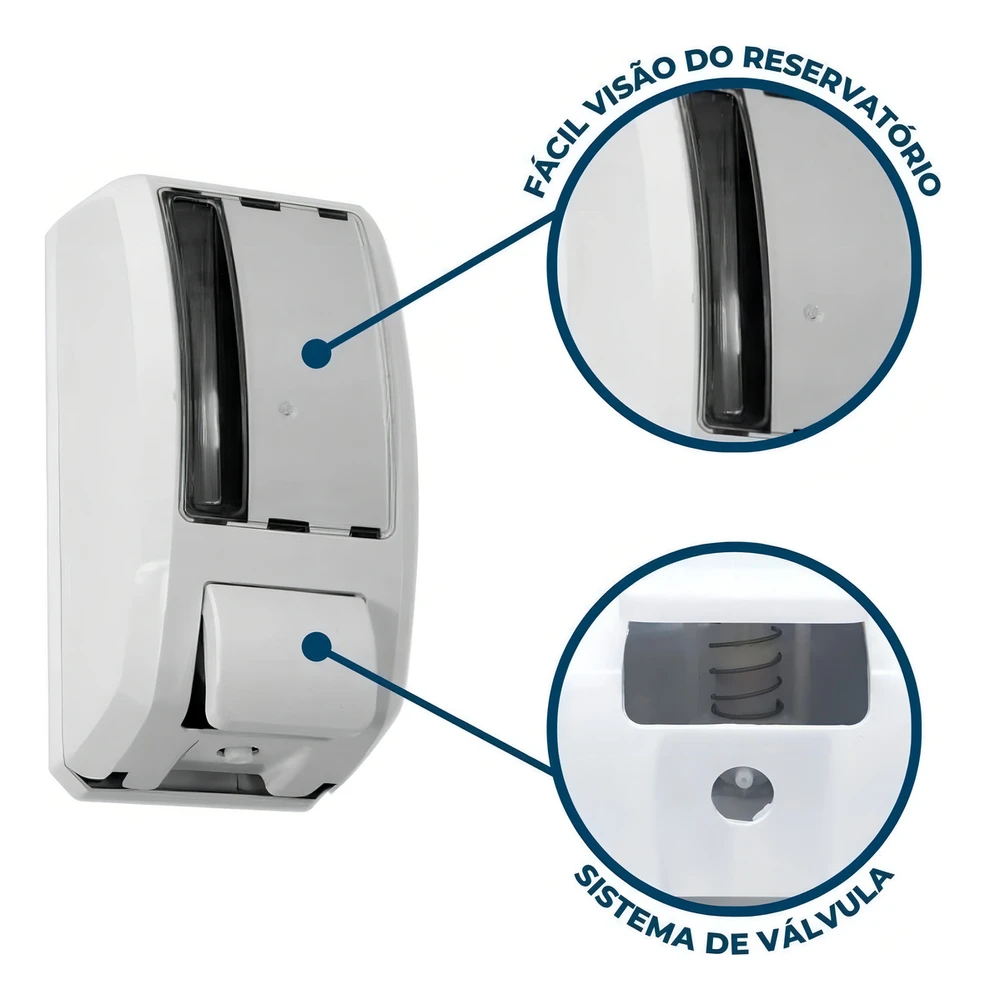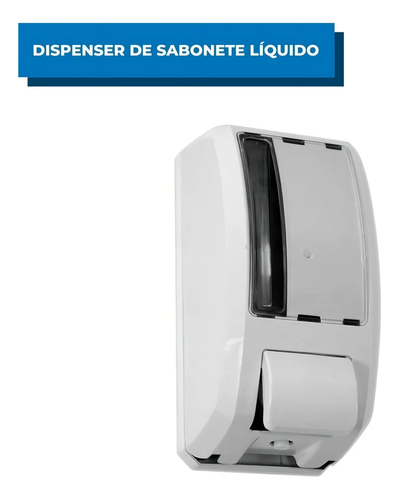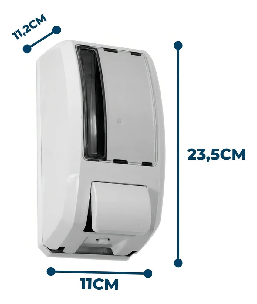 Saboneteira Elite ABS com reservatório para sabonete líquido ou álcool gel.Injetada em plástico ABS branco, possui sistema de válvula, visor cristal transparente, o que permite o controle da substituição do sabonete, fundo e botão na cor branco.Acompanha chave plástica, tampa do reservatório e kit contendo buchas e parafusos para fixação na parede.Características:Disponível na cor: BrancoCapacidade do reservatório: 1000mL (1L)Medidas: 235mm (altura) x 110mm (largura) x 112mm (profundidade).