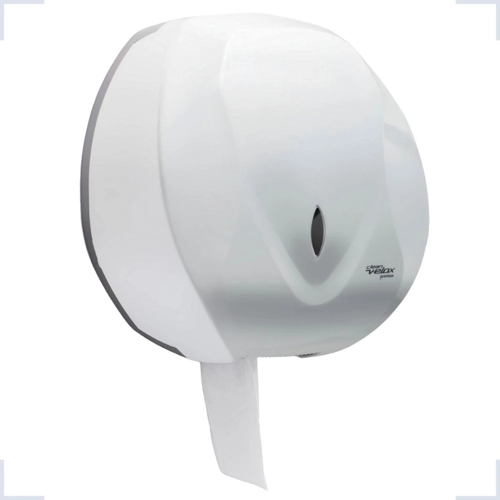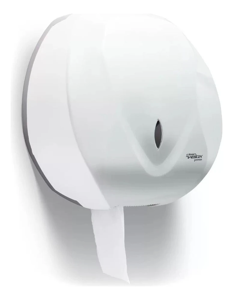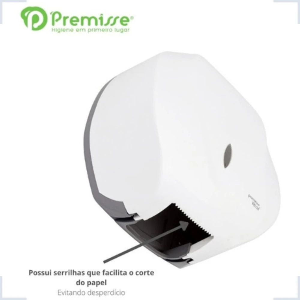 Dispenser Papel Higiênico Rolão Velox Branco Premisse Para Papel Higiênico de 300 / 500 MetrosO Dispenser para papel higiênico rolão de 300 / 500 metros é de fixação em parede com design moderno e inovador, fabricado com plástico reforçado em ABS, resistente, duradouro e com pouca necessidade de manutenção. O dispenser é para uso em empresas, clínicas, hotéis, bares, academias, cafés, bibliotecas, clubes, salão de beleza, condomínios, igrejas, residências e todos os lugares com acesso ao público com a finalidade de promover a higienização necessária. Os equipamentos da linha Velox da Premisse são importantes para economia, fazendo com que a quantidade correta do papel seja dispensada, evitando desperdícios.Marca: PremisseCor: BrancaUtilização: Para papel toalha higiênico tipo rolão de 300 ou 500 metrosO porta papel higiênico tipo rolão é de fácil e prática instalação, devendo ser fixado na parede, e os parafusos acompanham o produto. É eficaz devido à sua durabilidade. O Dispenser serve para uso de papel higiênico tipo rolão com tamanho de 300 metros ou 500 metros, projetado para uso de todas as marcas de papel do mercado. O suporte possui serrilhas nas saídas do papel facilitando o corte, garantindo alto rendimento e economia no consumo. O design é moderno e bonito.Dimensões:Largura 265mmAltura 290mmProfundidade 135mmAplicação:Verifique o local correto para fixar o dispenser, atentando-se às redes hidráulicas e elétricas. Para uso de fita dupla face (não inclusa), limpe a área com álcool, retire o liner protetor da fita e posicione o dispenser no azulejo ou alvenaria. Apenas parafusos acompanham o produto para fixação na parede.Dados Técnicos:- Constituído de plástico com alta resistência a impacto, 100% reciclável.- Processo de Produção por injeção termoplástica.- Sistema de Fechamento que dispensa chave.- Comporta rolos de até 500 metros.- Serrilhas nas extremidades de saída para facilitar o corte do papel.- Espaço interno com todas as paredes revestidas, o que garante mais higiene evitando umidade e poeira.Cuidados especiais e precauções:Após a instalação, verifique se o dispenser foi bem fixado antes de abastecer com refil.