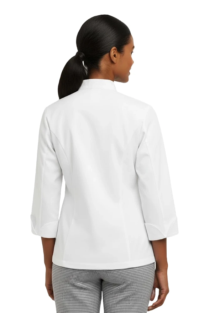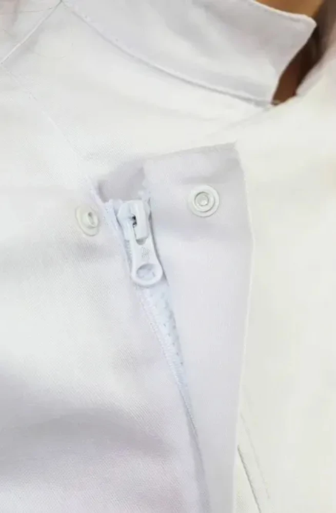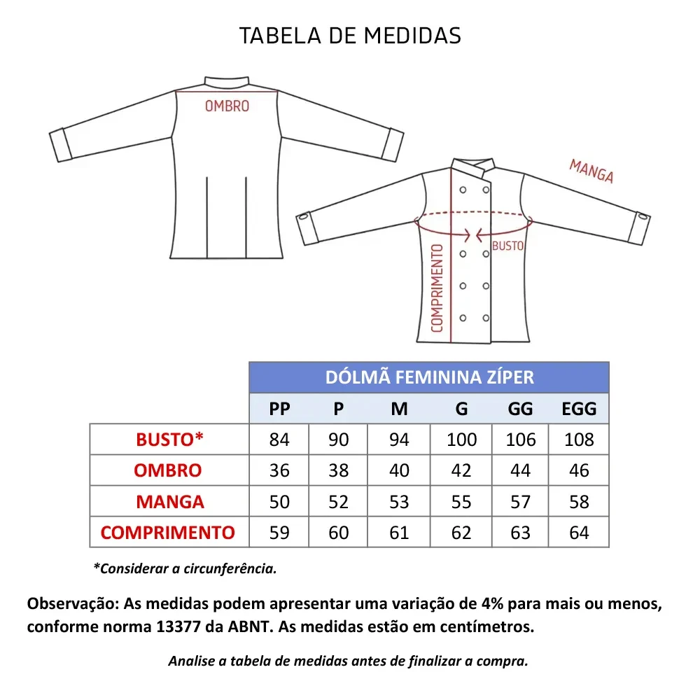 Dolmã chef de cozinha feminina manga 7/8 com zíper: conforto e praticidade para chefs exigentes.