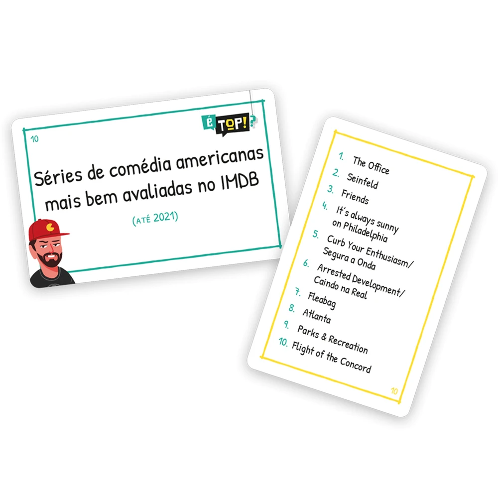 Um jogo para testar seu conhecimento. É Top!? Geek & Pop traz cartas com temas do universo geek e da cultura pop e pode ser jogada sozinha ou combinada com outras versões do jogo.