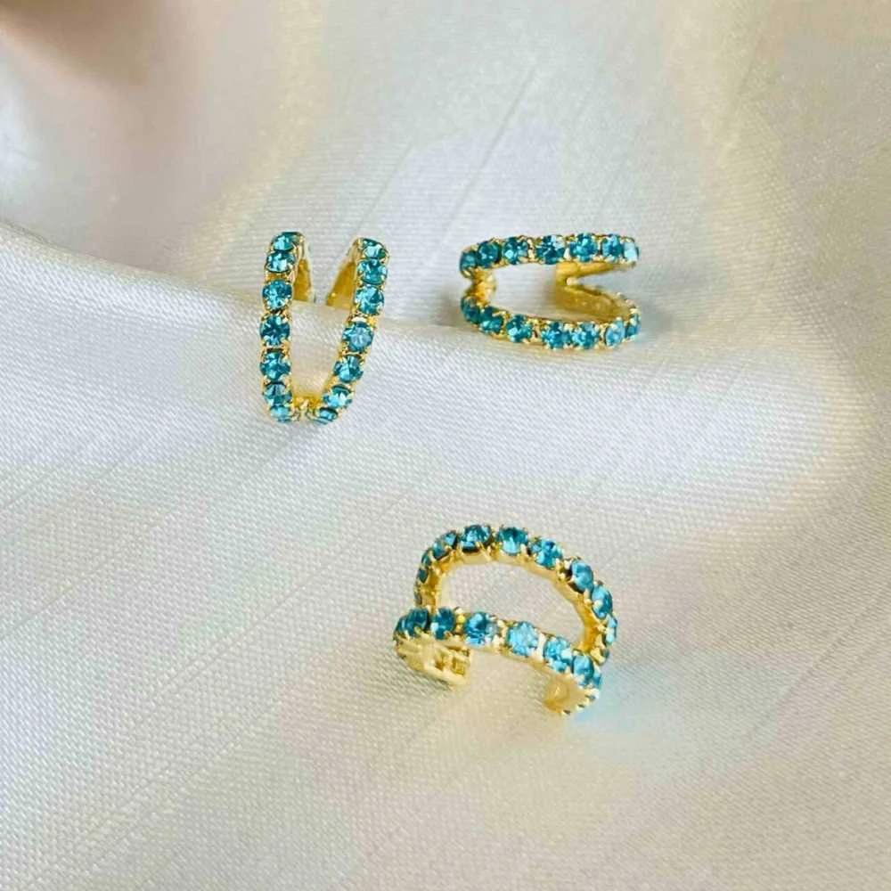 Ear Hook Piercing Fake Duplo Aro Strass Azul Tiffany