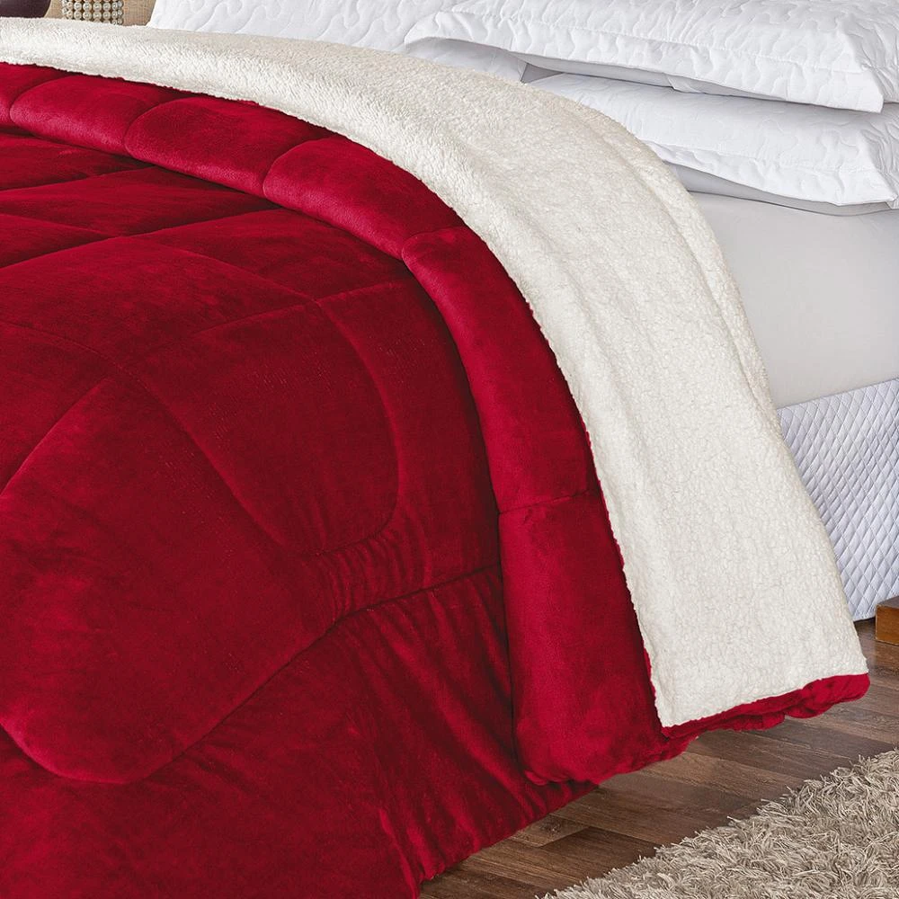 Edredom Casal Padrão Coberdrom Sherpa/Mantinha Everest 1 Peça - Vermelho