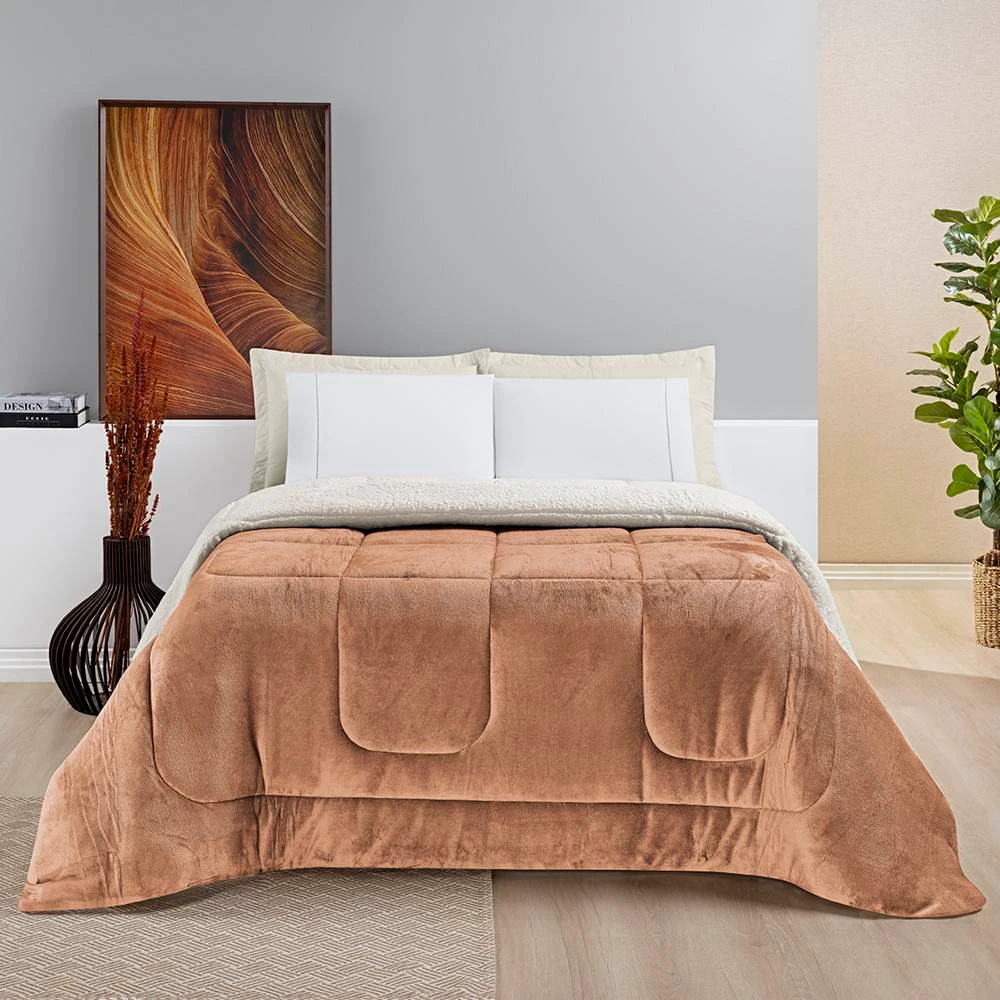 Edredom King Coberdrom Sherpa/Mantinha Everest 1 Peça - Apricot
