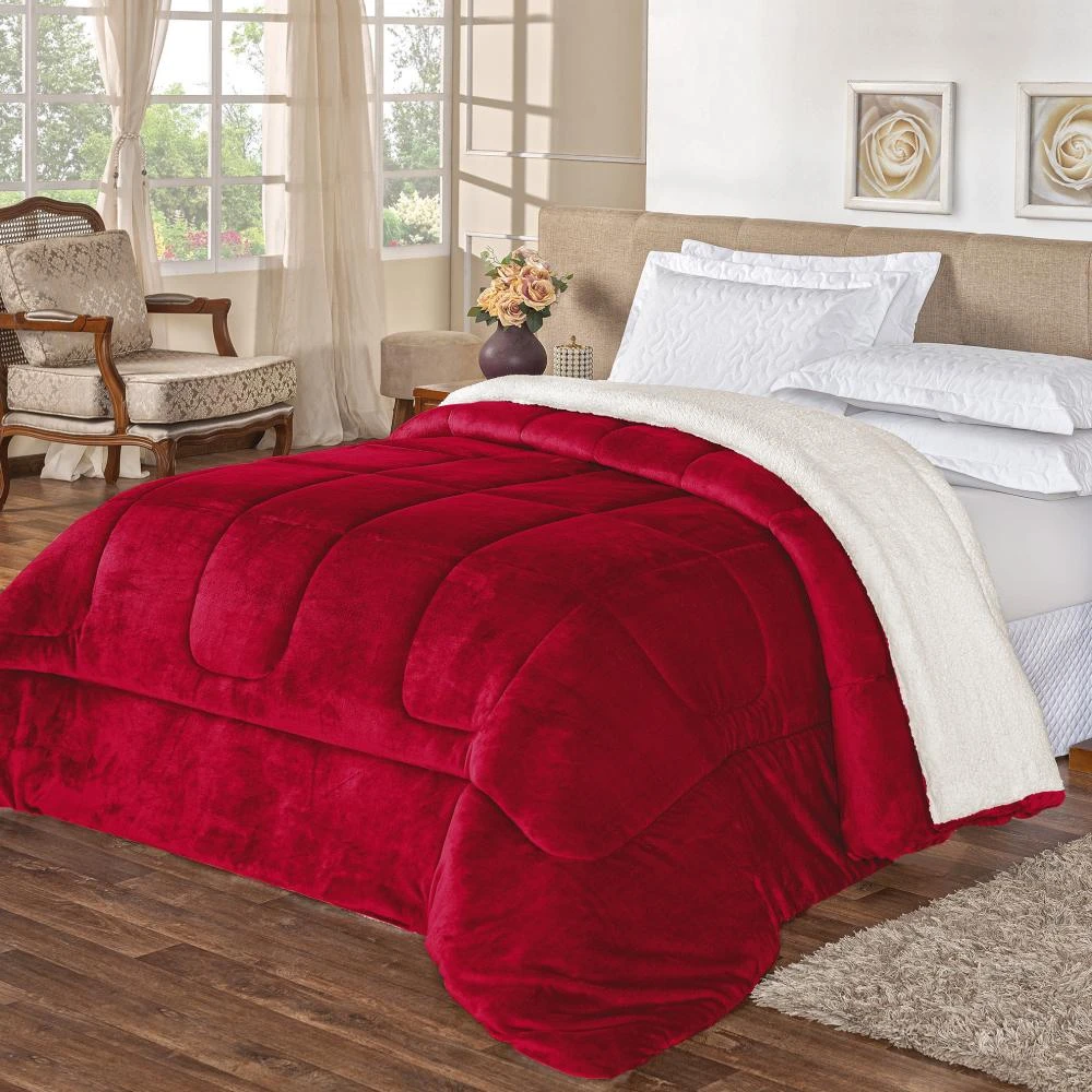 Edredom Queen Coberdrom Sherpa/Mantinha Everest 1 Peça - Vermelho