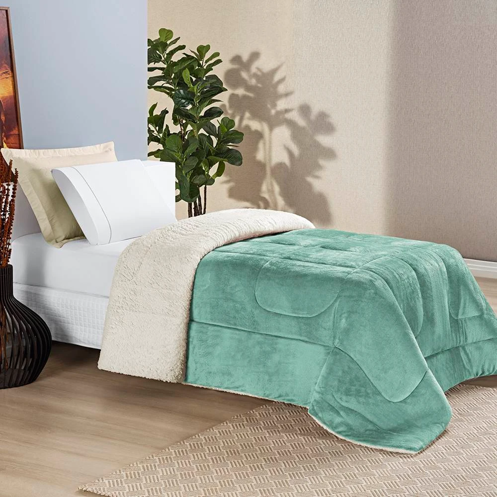 Edredom Solteiro Coberdrom Sherpa/Mantinha Everest 1 Peça - Alecrim