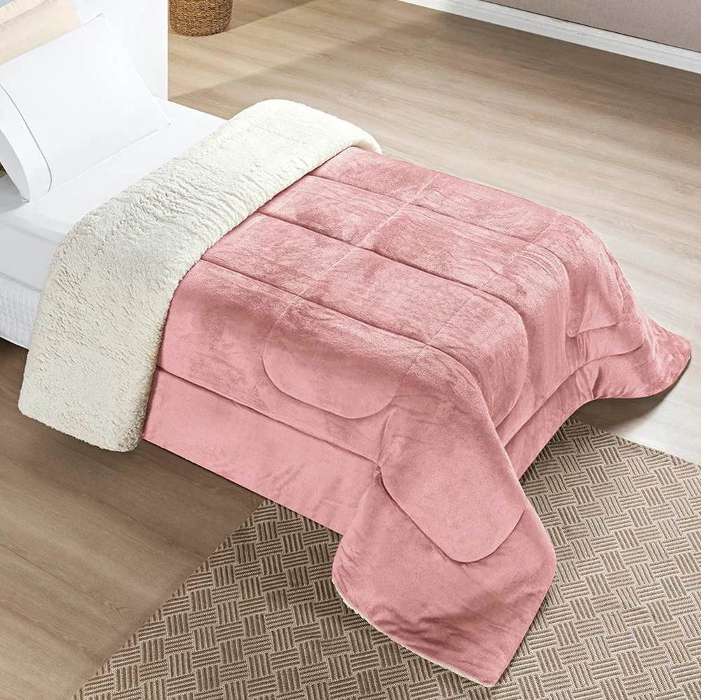 Edredom Solteiro Coberdrom Sherpa/Mantinha Everest 1 Peça - Rosa Secreto
