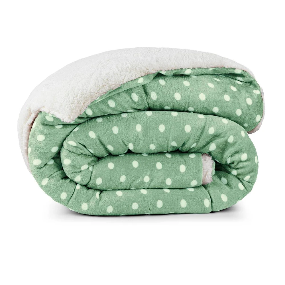 Apresento a vocês nosso Coberdrom Petit Poa. Dupla face, matelassado em manta siliconizada, um dos lados é produzido em Sherpa fofinha como novelo de lã de carneiro, e outro lado em mantinha flannel aveludada. Super quentinho e aconchegante, proporcionará uma bela noite de descanso.
