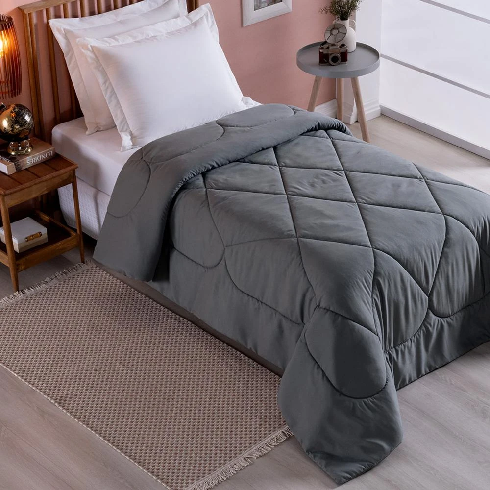Edredom Solteiro Unique Dupla Face Micropercal 200 Fios 1 Peça - Grafite