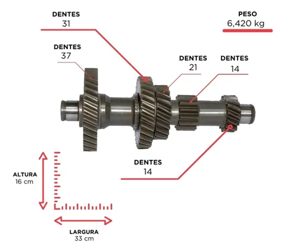 EIXO INTERM. 37-31-21-14-14 D. - CX. 4 MARCHAS PATRAL 6528 3341198002 40071 30.003.808