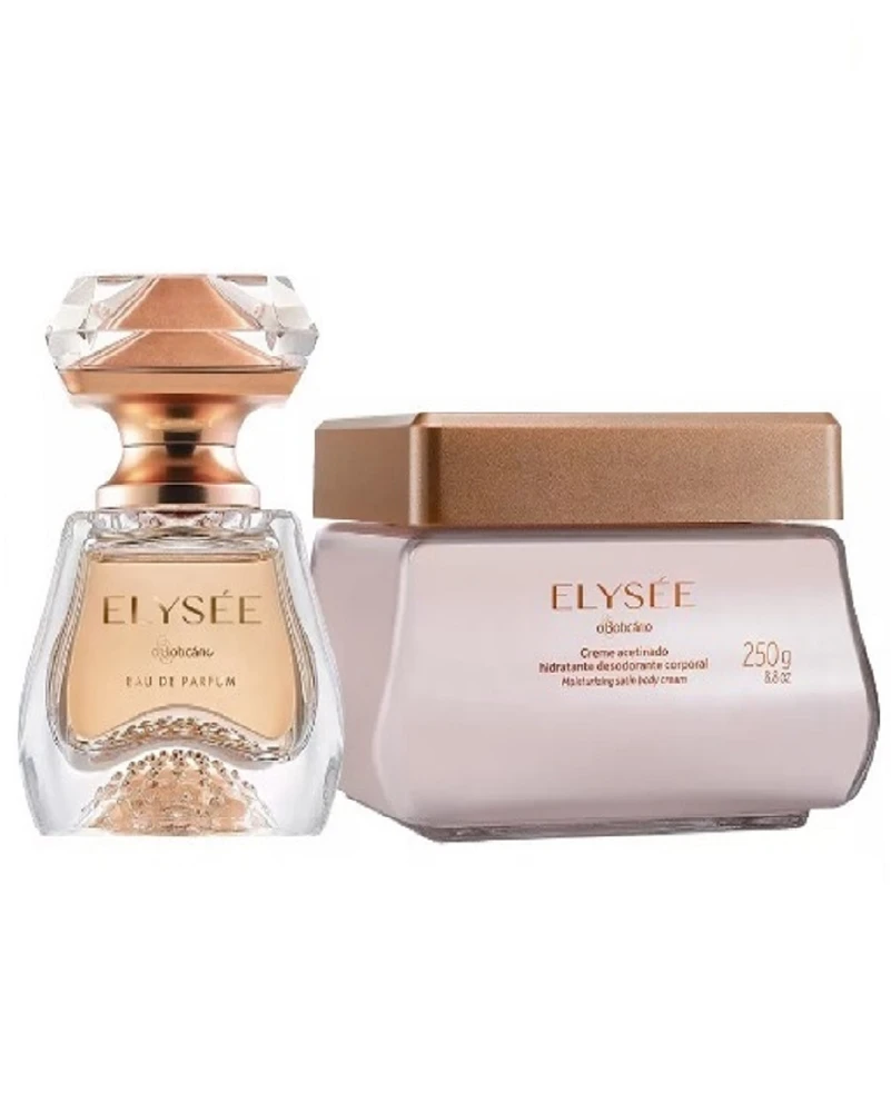 O KIT Elysée possui dois produtos: o Eau de Parfum e o Creme Acetinado. Ambos possuem um toque de sofisticação com atual e moderno, para uma mulher que busca qualidade e presença em todos os lugares: