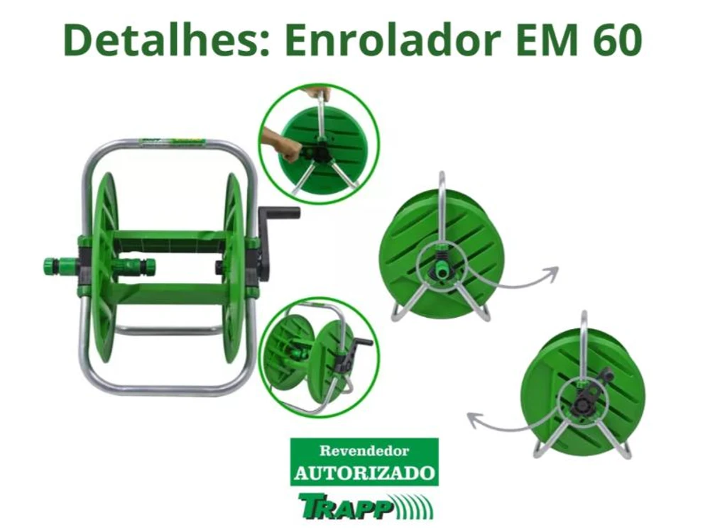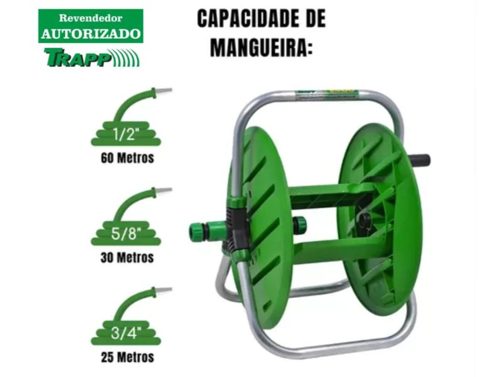 - Esse novo enrolador de mangueira da TRAPP irá surpreender você. Desenvolvido polipropileno reforçado e com tubo de alumínio, proporcionando alta resistência e leveza ao produto.