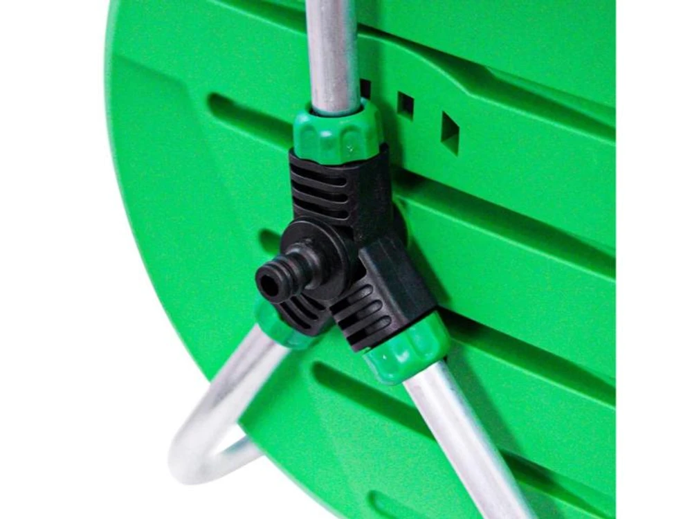 Possui sistema de conexão direto à saída de água através de uma mangueira, ou seja, não é necessário desconectar a mangueira da torneira para que a mesma seja enrolada.