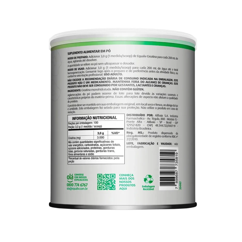 EQUALIV Creatina 100% Monohidratada 300g é o suplemento ideal para quem busca aumento real de força, resistência e desempenho físico. Com alta pureza e solubilidade, garante rápida absorção, potencializando seus treinos e resultados. Produto vegano, não contém glúten, é certificado Halal e Kosher, além de ser Non-GMO, proporcionando segurança e qualidade para todos os usuários.