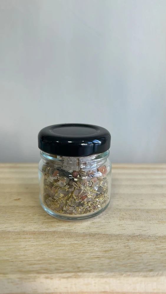 Composição: Sal grosso, mentol, lauril em pó, ácido cítrico, uréia, óleo vegetal de semente de uva,essência, bicarbonato de sódio, erva desidratada e corante natural.