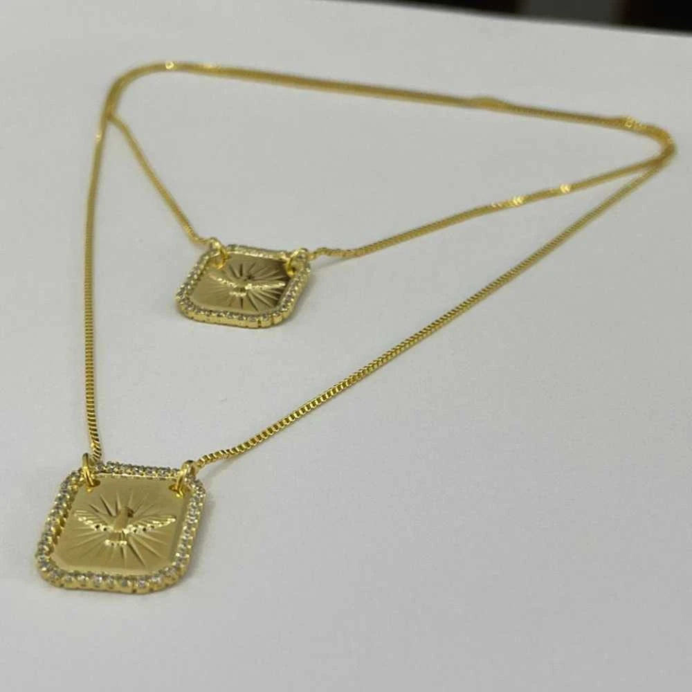 Escapulário Espírito Santo Banhado em Ouro 18k e Cravejado - 60cm