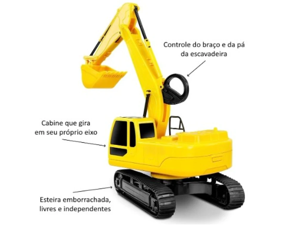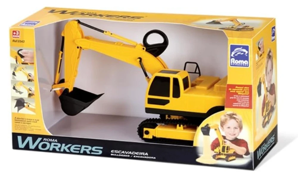 Escavadeira Workers Roma Jensen O Roma Workers Escavadeira é super potente com alça de comando que faz o braço e a pá basculharem para cavar e carregar.