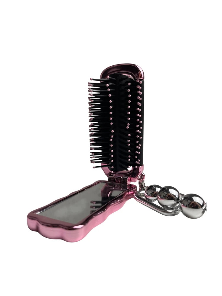 A Escova de Cabelo com Espelho Dobrável é o acessório de beleza indispensável para quem busca praticidade e estilo em um só produto. Com um design inteligente e compacto, esta escova articulada abre-se para revelar um espelho interno de alta nitidez, permitindo que você retoque o penteado e a maquiagem em qualquer lugar. O acabamento em rosa metálico confere um visual moderno e sofisticado, enquanto o chaveiro de esferas prateadas acoplado permite que ela seja facilmente pendurada em bolsas, mochilas ou chaves, garantindo que você nunca esteja desprevenida.