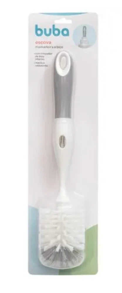 A escova para mamadeira e bico da Buba é ideal para lavar garrafas e mamadeiras, pois atinge áreas difíceis de serem alcançadas. Acompanha limpador de bicos, que podem ser acessados desrosqueando o cabo da escova.
