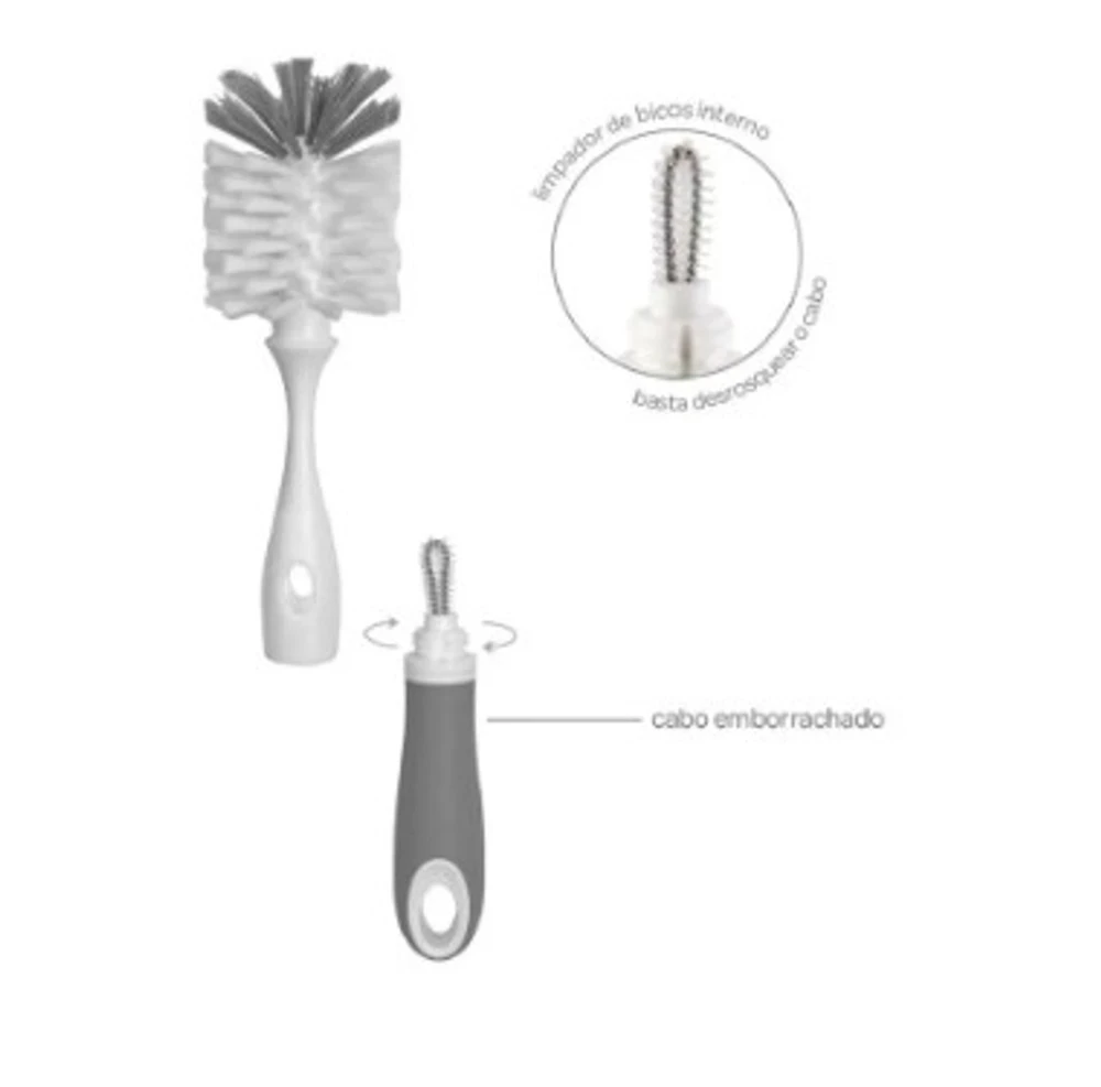 Possui cerdas flexíveis que se adaptam as diferentes formas de mamadeiras e o interior dos bicos.