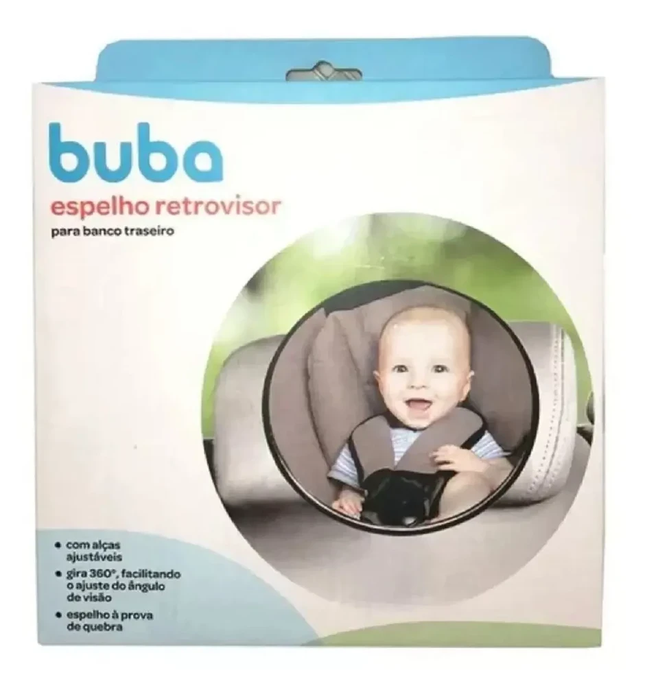 O espelho retrovisor para banco traseiro da Buba foi desenvolvido para oferecer mais segurança e tranquilidade durante os passeios de carro com o bebê. Ideal para cadeirinhas viradas de costas para o motorista, ele permite manter o contato visual com a criança sem desviar a atenção do trânsito. Seu espelho convexo amplia o campo de visão, e o sistema giratório de 360° possibilita ajustar facilmente o melhor ângulo. O design prático com alças ajustáveis e clipe de fixação garante instalação firme e compatível com a maioria dos veículos.