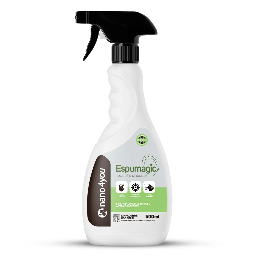 Cuidar de tecidos e superfícies sintéticas nunca foi tão fácil. O Espumagic Tecidos e Sintéticos, da nano4you HOME, é um limpador técnico com espuma ativa e tecnologia de base vegetal que remove sujeiras orgânicas sem encharcar ou agredir as fibras.