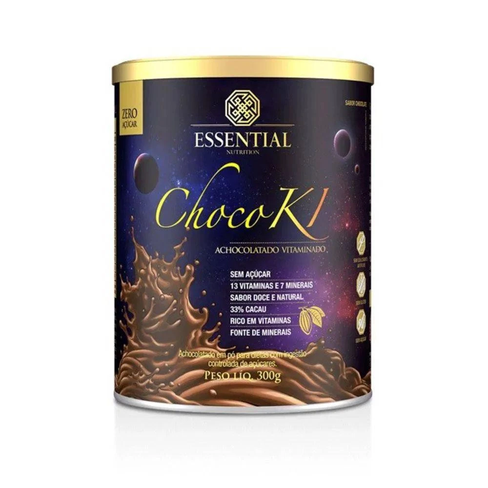 O que é chocokiChocoki é um achocolatado formulado com 33% de cacau e um complexo de 13 vitaminas e 7 minerais com alto padrão de qualidade. É uma alternativa para substituir achocolatados tradicionais adoçados com açúcar, uma vez que contém apenas 26 kcal por porção (15g) e não contém açúcar, conservantes, adoçantes artificiais, soja, lactose, glúten, maltodextrina, frutose e proteínas lácteas, como a caseína.Para que serveSubstituir achocolatados tradicionais com alto teor de açúcarFonte de polifenóis provenientes do cacauRico em vitaminasFonte de mineraisDiferenciais de qualidadeComplexo de 13 vitaminas7 minerais quelados de excelente perfil de absorção33% de cacau gourmet, fonte de polifenóis26kcal por porçãoSem adoçantes artificiaisSem açúcarSem alergênicosSem glútenSem lactoseSem proteínas lácteasSem caseínaSem derivados da sojaSem maltodextrinaSem frutoseSem conservantesOpção para veganos e vegetarianosEspecificações:Marca: essential nutritionProduto: choco-ki 300gVolume: 300gGênero: unissexIndicado para: saúdeForma:pó Glúten: não contémPeso/quantidade: 300Anvisa: registro isento conforme resolução rdc anvisa 23/00 e 27/10 anexo i.