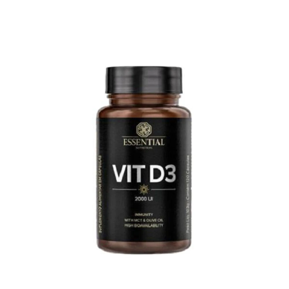 Vit D3 500mg Essential Nutrition 120 Cápsulas A vitamina D é essencial para o equilíbrio do organismo, pois possui muitas propriedades funcionais e auxilia no funcionamento do sistema imune e na formação de ossos e dentes.A vitamina D é lipossolúvel, ou seja, sua absorção depende da presença de gordura durante a digestão.O azeite de oliva extravirgem prensado a frio e o TCM são tipos de gorduras com grandes propriedades nutricionais e que favorecem a absorção de vitamina D no organismo.Quantidade: 120 Cápsulas de 500mgProduto isento da obrigatoriedade de registro na anvisa conforme rdc 27/2010