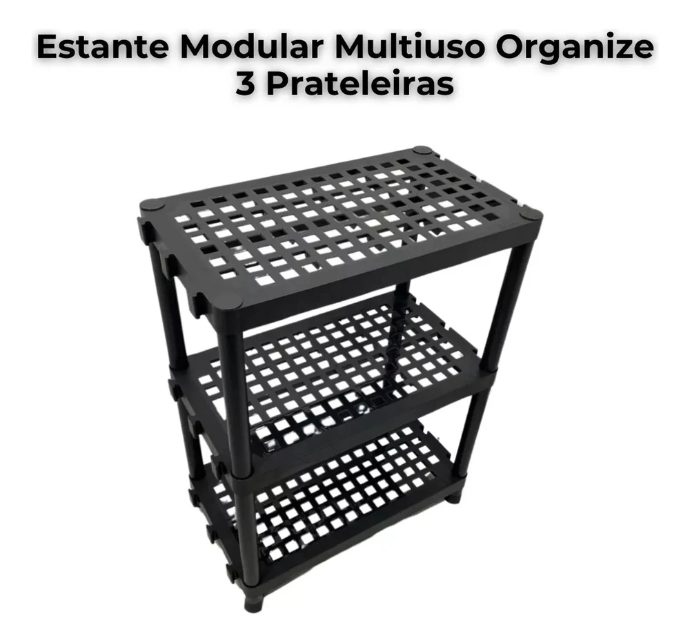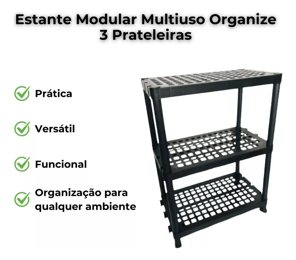 Estante Modular 4 PrateleirasMarca : Util PlastA estante modular com encaixe lateral é projetada para se adaptar a diferentes ambientes, como banheiros, cozinhas, áreas de serviço e escritórios. Sua versatilidade permite que você a utilize de acordo com suas necessidades específicas.Ela oferece uma solução de armazenamento eficiente sem ocupar muito espaço.- Montagem Fácil: O sistema de encaixe lateral facilita a montagem da estante. Você não precisa de ferramentas complicadas ou habilidades especiais para montá-la. Basta seguir as instruções e você terá uma estante funcional em pouco tempo.Oferece praticidade, economia de espaço e durabilidade, tornando-a uma excelente escolha para organizar seus ambientes.INFORMAÇÕES TÉCNICAS:Contém:08 Canos4 Pés3 PrateleirasComposição: PolipropilenoAltura: 76 cmLargura: 60cmProfundidade: 35cm