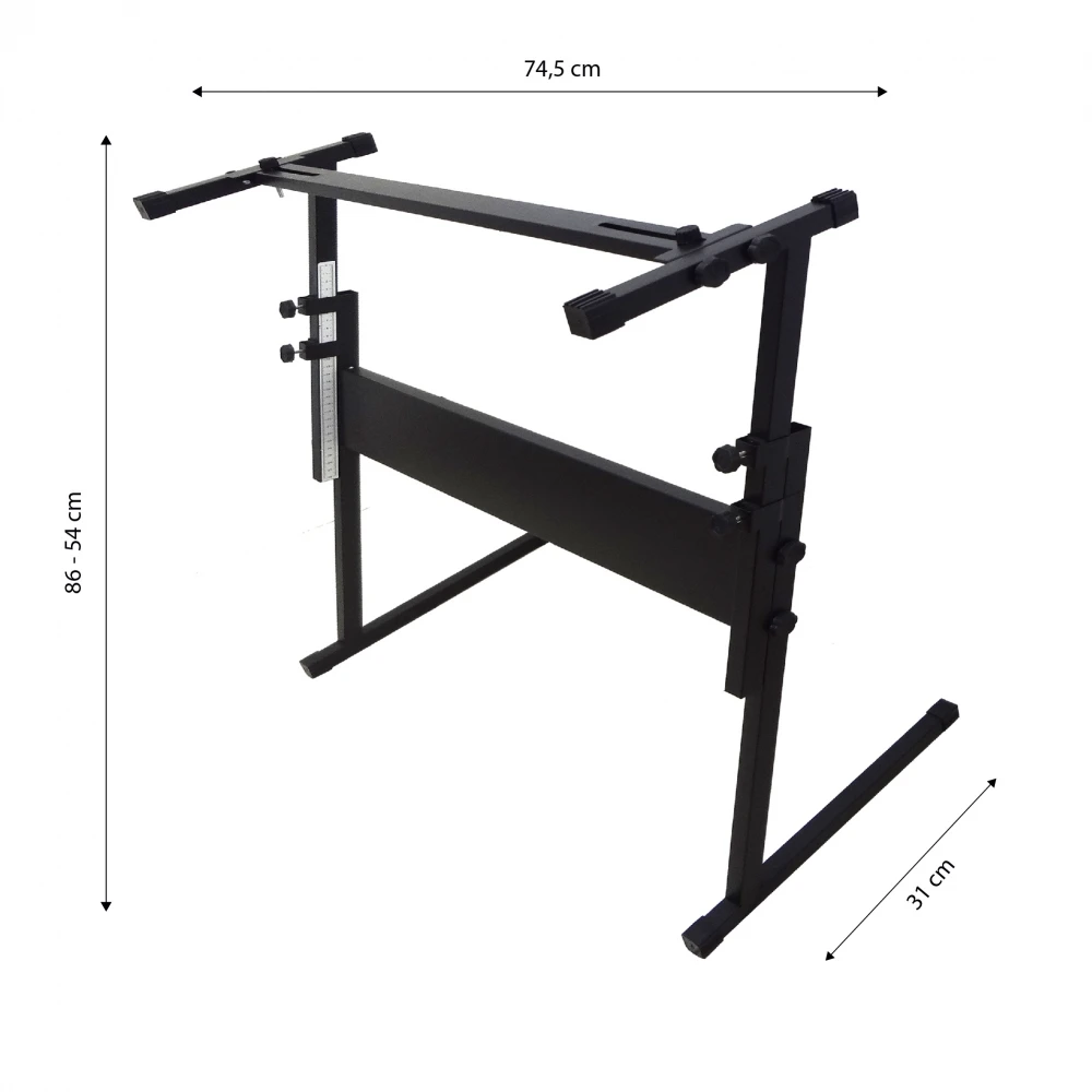 Construção sólida com capacidade para teclados de 61 teclas, unindo praticidade e durabilidade