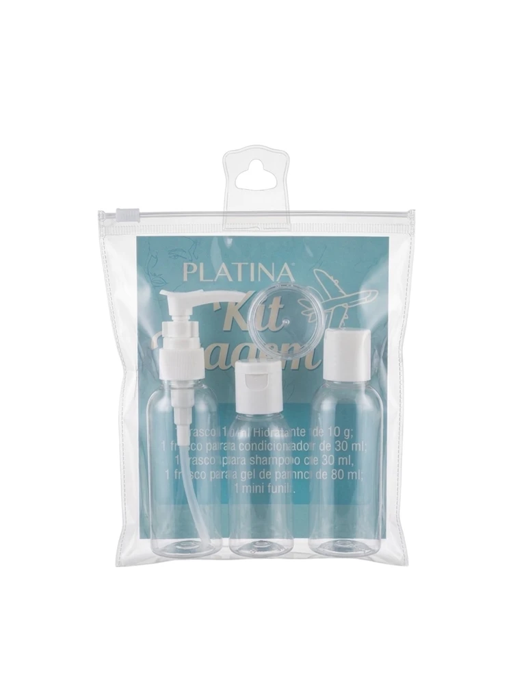 O kit acompanha 4 frascos reutilizáveis ideais para shampoo, condicionador, cremes e outros líquidos, além de um funil, que facilita o abastecimento sem desperdício. O estojo mantém tudo protegido e fácil de acessar dentro da mala ou bolsa.