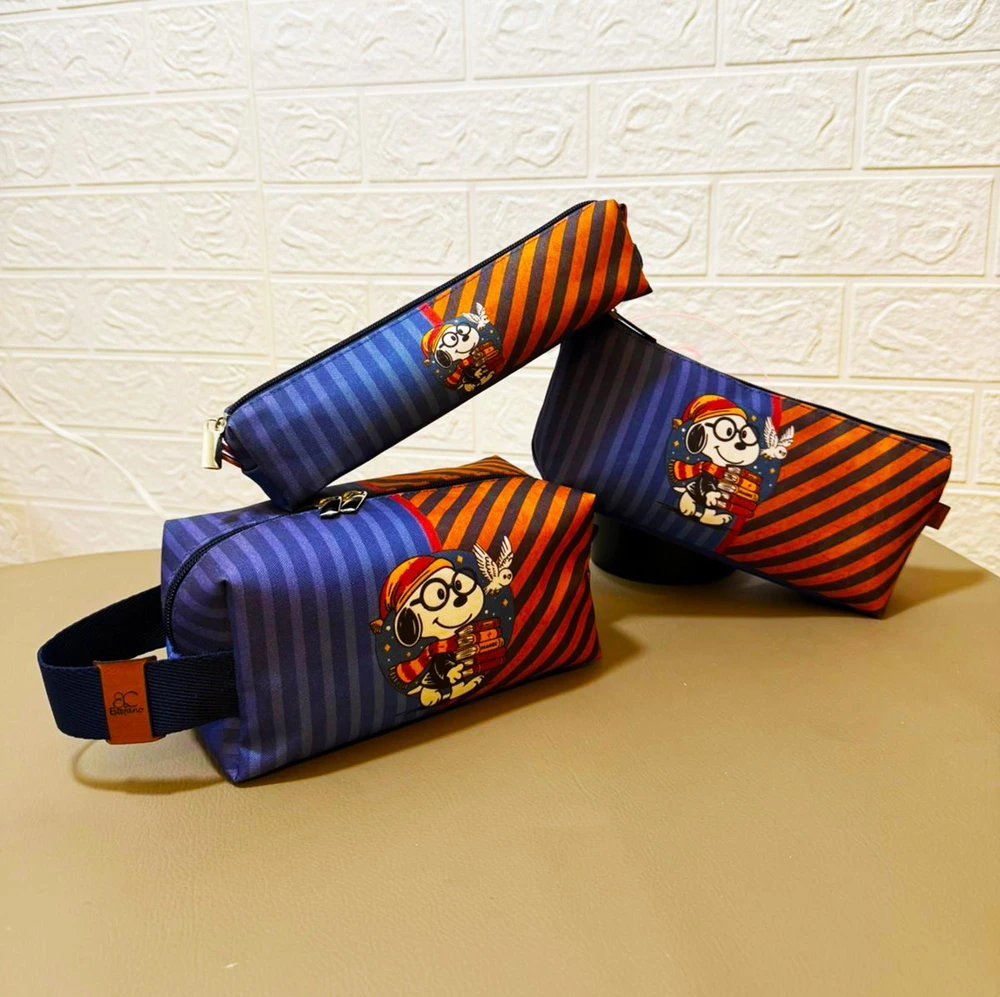 Perfeito para levar na bolsa, mochila, mala, este estojo fofinho une praticidade, estilo e um toque de magia para fãs de Snoopy e do mundo bruxo!