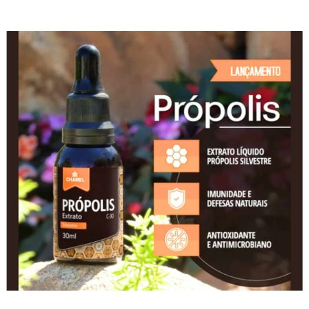A Própolis é um produto balsâmico produzido pelas abelhas com aglutinação da resina coletada de diversas partes vegetais e misturada com pólen, enzimas, cera e substâncias especiais das abelhas.
