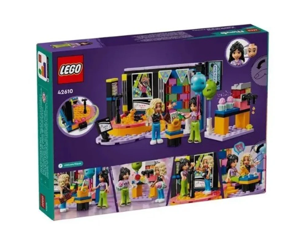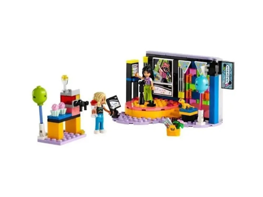 Festa De Karaoke Lego O set LEGO Friends Festa de Karaoke inclui um palco giratório, microfones, área de convívio e máquina de granizadas para que as crianças criem a história de uma festa de aniversário com karaoke.