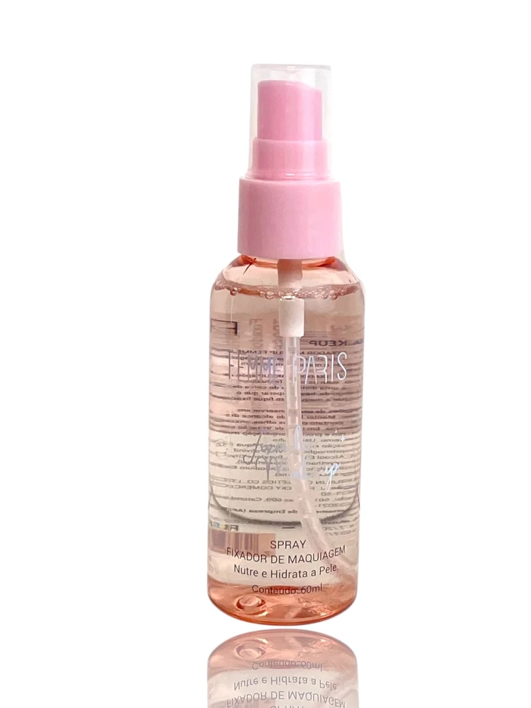 Fixador de Maquiagem Femme Paris 60ml – hidrata, nutre e prolonga a durabilidade da make com acabamento leve e natural.