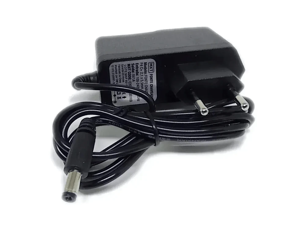 Visual típico de adaptadores de parede (block), com plug P4. Detalhes visuais não especificados nas fontes disponíveis.