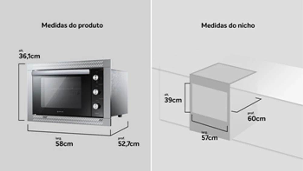 O Forno ainda é capaz de economizar energia, graças ao seu isolamento térmico aprimorado. Também possui multifunções para bolos, massas, carnes, grill. Além de ter luz automática, ativada sempre que é ligado.