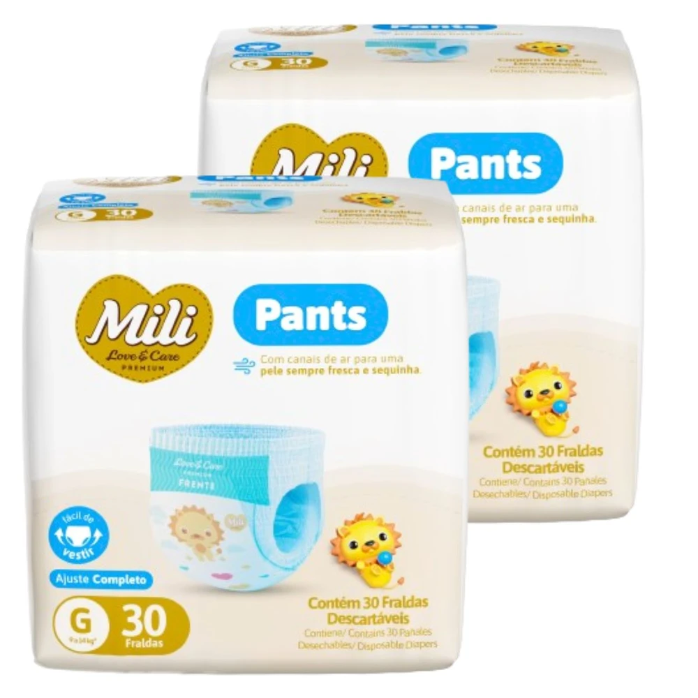 Fralda Descartável Mili Love & Care PREMIUM PANTS (Tamanho G) cintura elástica 360º