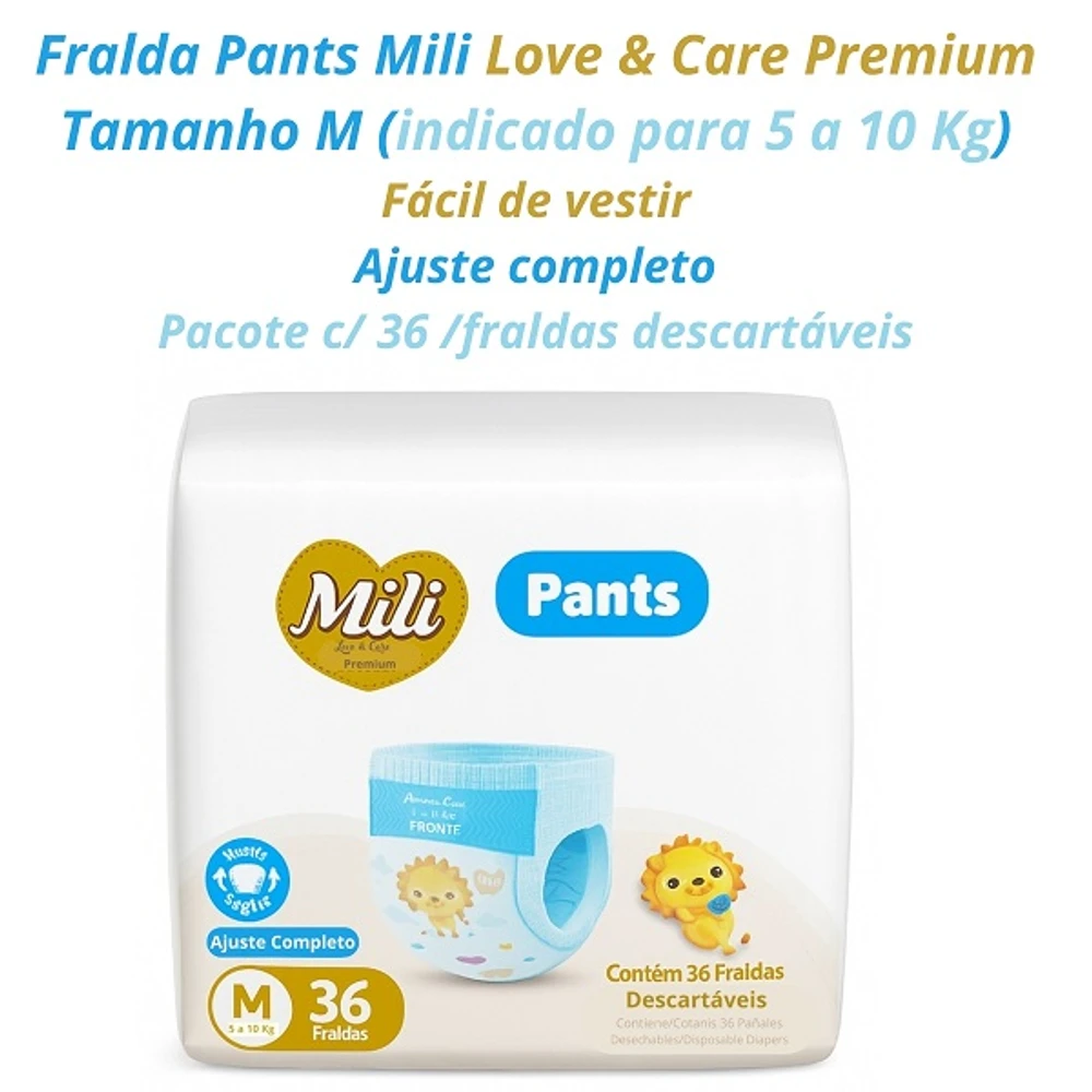 Fralda Descartável Mili Love & Care PREMIUM PANTS (Tamanho M) cintura elástica 360º