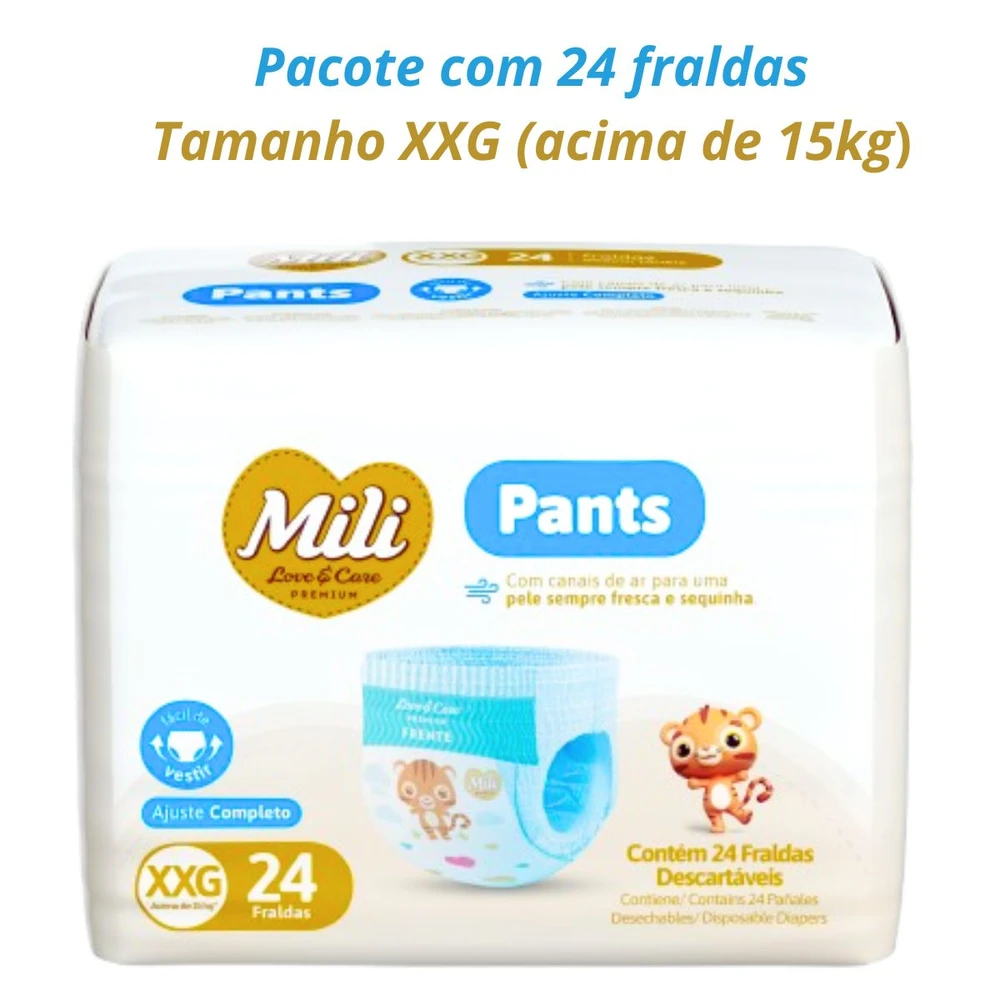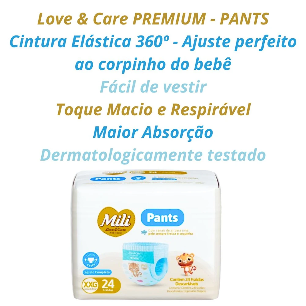 Fralda Descartável Mili Love & Care PREMIUM PANTS (Tamanho XXG) cintura elástica 360º