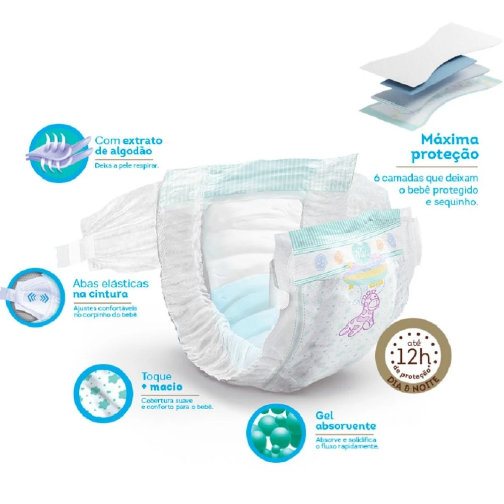 Com até 12 horas de proteção, ela oferece todo o cuidado e suavidade que seu filho precisa para ficar sempre sequinho e confortável.