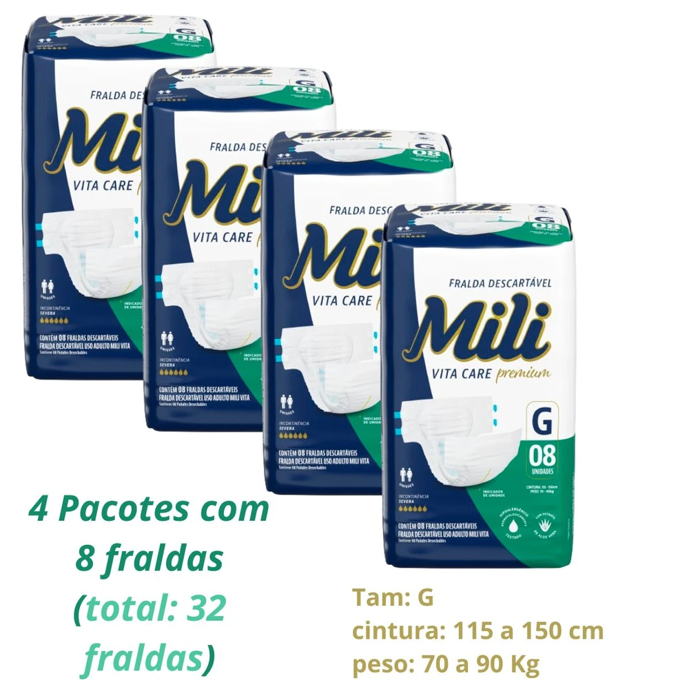 Mili Vita - de uso Aduto, Pós-operatório, Incontinência, Pós-parto Tamanho G Quantidade: 4 Pacotes contendo 8 fraldas (Total 32 fraldas) Os dias ensolarados e longos da primavera inspiram hábitos mais saudáveis, que são garantia de qualidade de vida. São poucas as condições físicas que limitam completamente os idosos. Na maior parte das vezes, sempre é possível encaixar o exercício na rotina. Mesmo as pessoas que apresentam algum grau de incontinência podem se exercitar sem receio graças à tecnologia aplicada às fraldas de uso adulto.