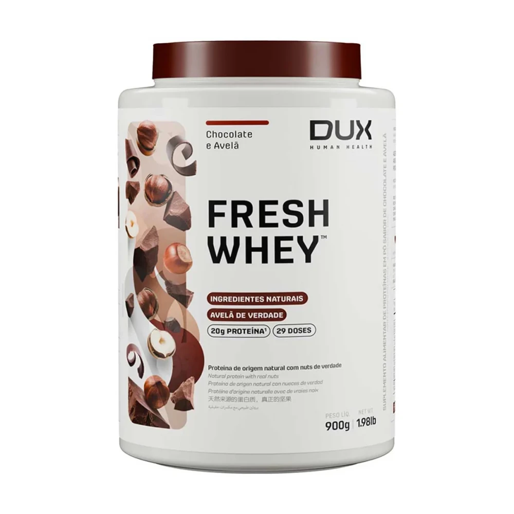 FreshWhey DUX é um whey protein com ingredientes naturais, frutas e nuts de verdade, oferecendo sabores reais e experiência superior. A fórmula combina whey concentrado, isolado e hidrolisado, entregando o equilíbrio entre sabor, pureza e qualidade, com 20 g de proteína por porção e perfil completo de aminoácidos.