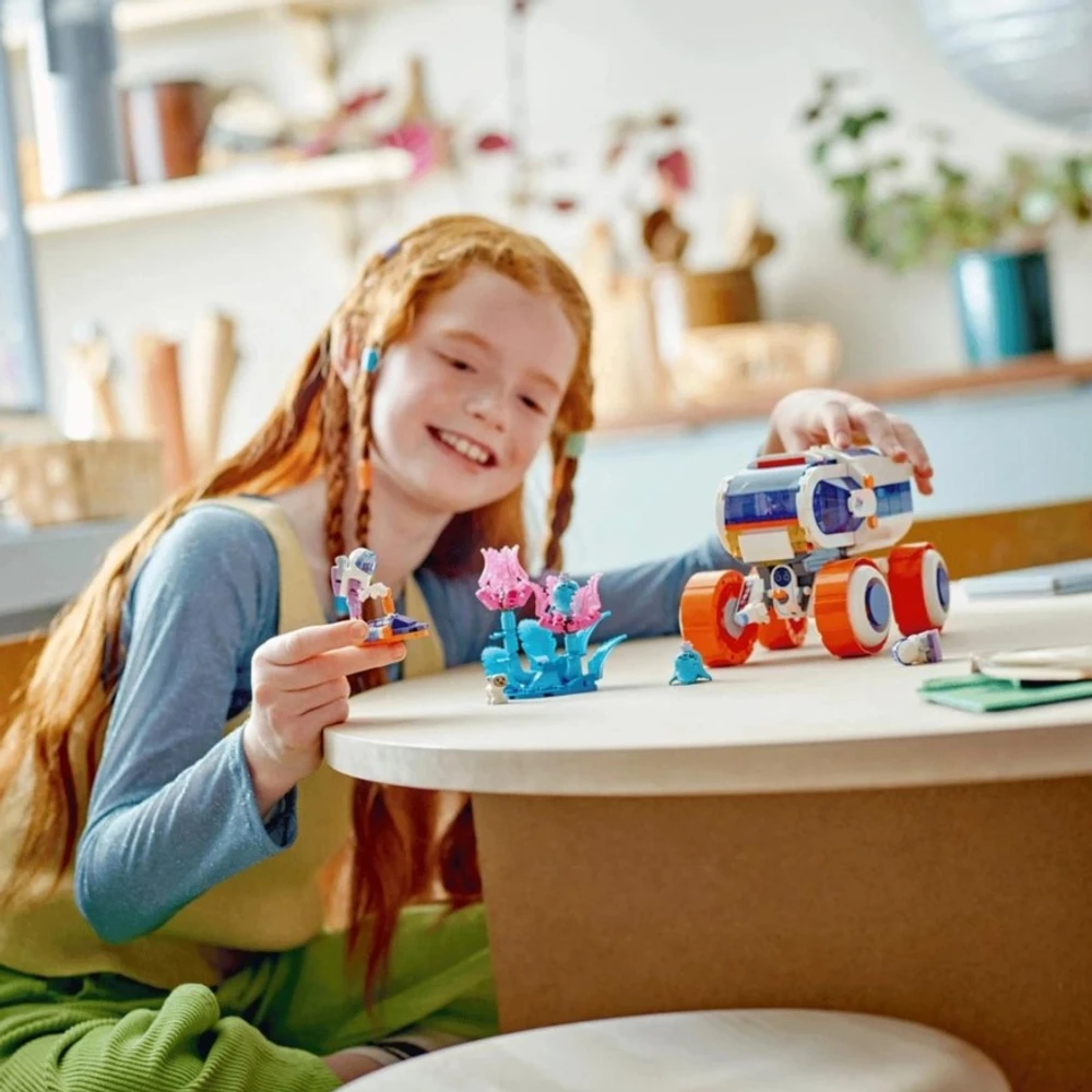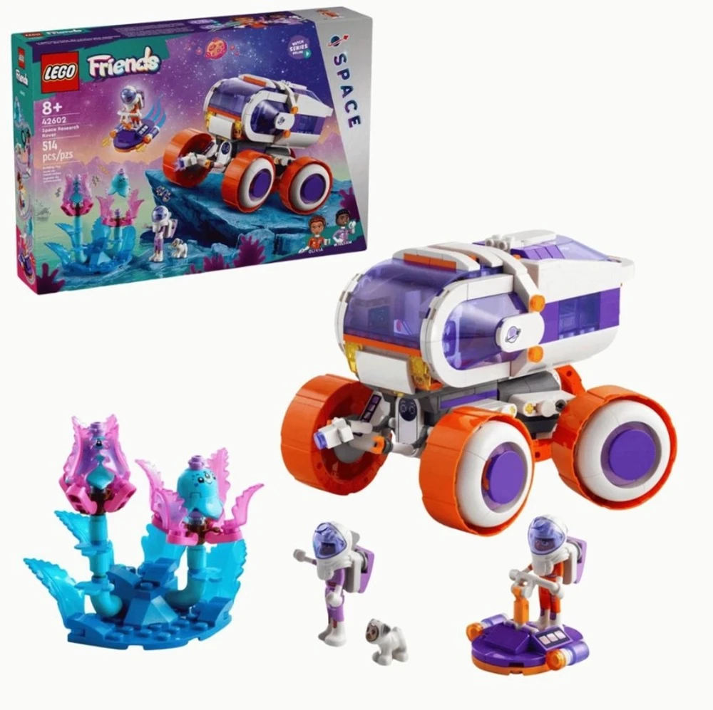 Este brinquedo permite que meninos e meninas 8 + criem as suas próprias histórias de extraterrestres para os 2 amigos e o cão astronauta. O lego Friends Carro de Investigação Espacial (42602) conta a história de Olivia e William, que exploram um planeta desconhecido. Procuram sinais de vida extraterrestre e o rover com rodas tem tudo o que precisam, incluindo um laboratório de brincar e scooter.