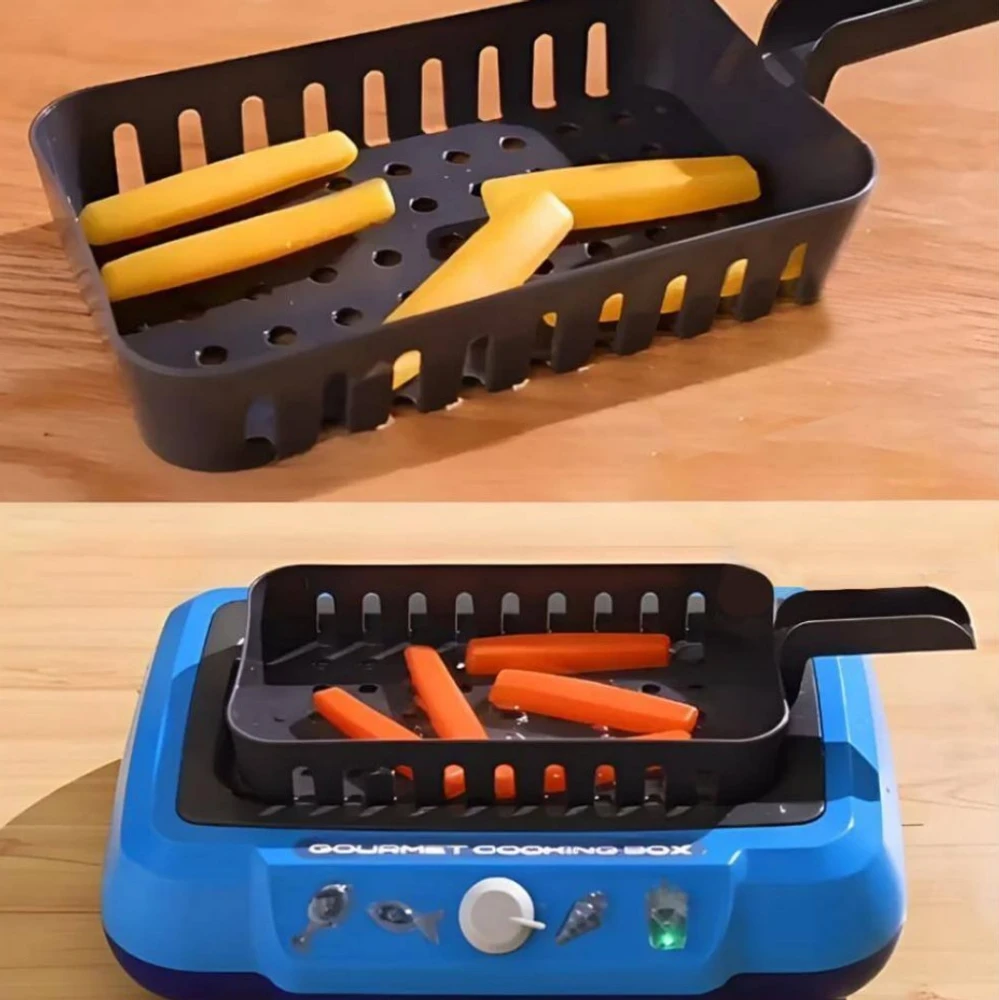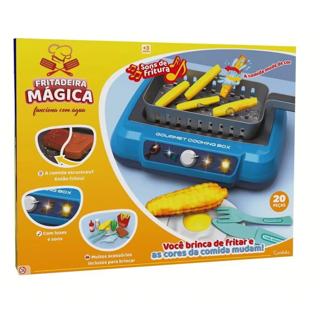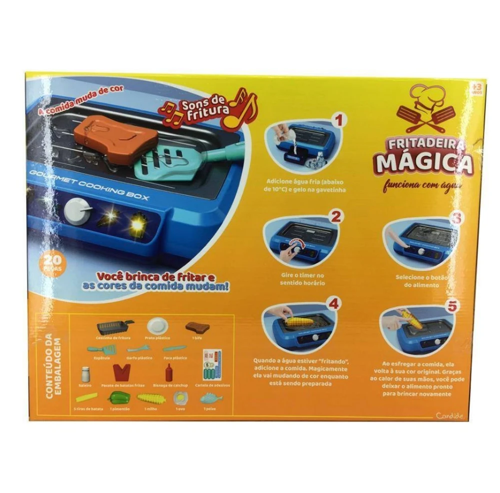 Apresentamos a incrível Fritadeira Mágica Candide! Com ela, as crianças podem se divertir e aprender enquanto simulam o processo de dourar alimentos sem usar calor ou óleo. Basta adicionar água gelada ao compartimento apropriado, colocar os alimentos de brinquedo e ligar a fritadeira. As crianças vão adorar ver os alimentos ganhando uma cor dourada de maneira mágica e divertida.