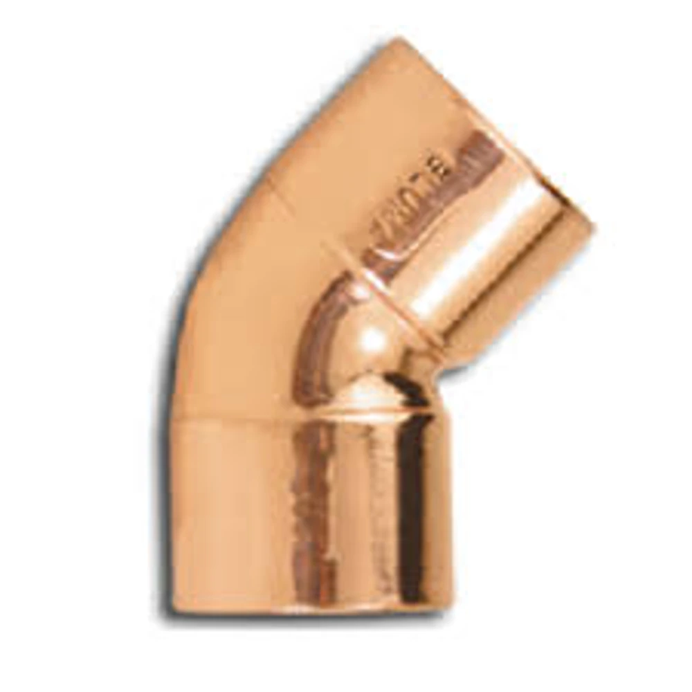 CONEXAO COBRE CURVA 45º LONGA 3.1/8`´x 2,18MM TIPI PRODUTO EXCELENTE QUALIDADE, ATENDE A NORMA INTERNACIONAL ASME B16.22 E É DESTINADO PARA CONSUMO CONSUMO EM REFRIGERAÇÃO. POSSUI UM SISTEMA DE "STOP" PARA LIMITAR A CORRETA PENETRAÇÃO DO TUBO PARA UM ENCAIXE E SOLDA PERFEITOS. PAREDE ASME B16.22