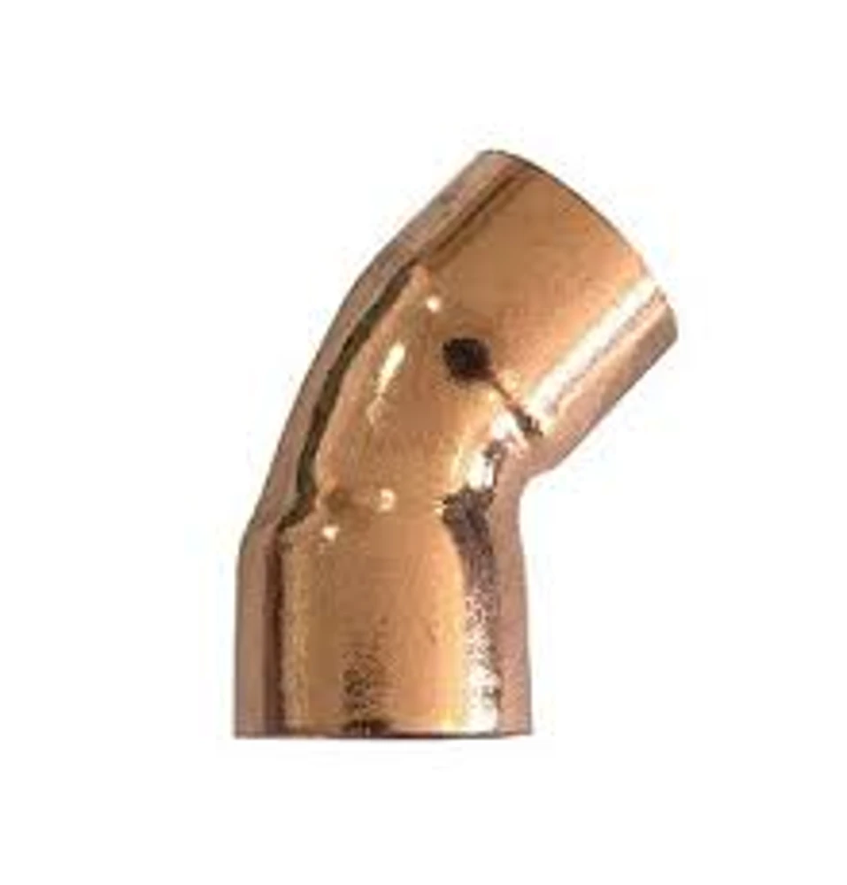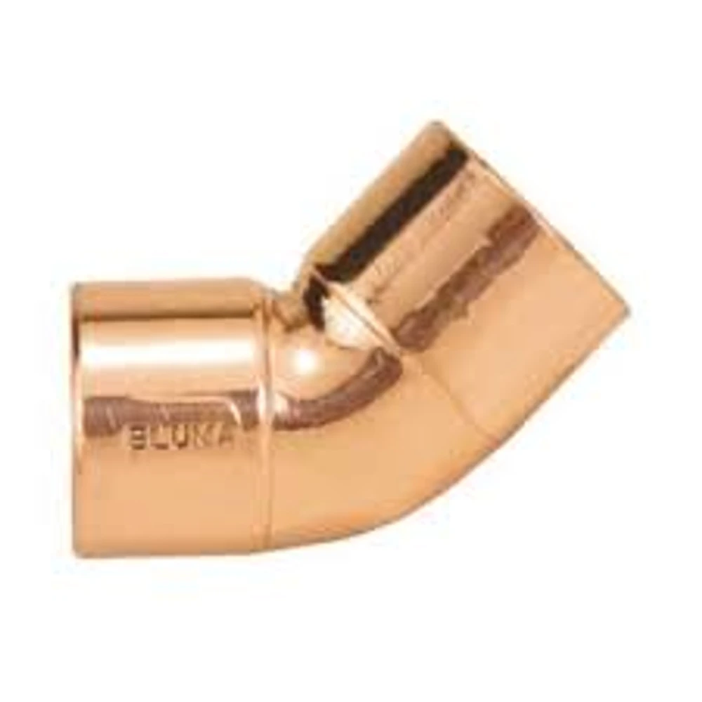 CONEXAO COBRE CURVA 45º LONGA 7/8`´ x 1,02MM TIPI PRODUTO EXCELENTE QUALIDADE, ATENDE A NORMA INTERNACIONAL ASME B16.22 E É DESTINADO PARA CONSUMO CONSUMO EM REFRIGERAÇÃO. POSSUI UM SISTEMA DE "STOP" PARA LIMITAR A CORRETA PENETRAÇÃO DO TUBO PARA UM ENCAIXE E SOLDA PERFEITOS. PAREDE ASME B16.22