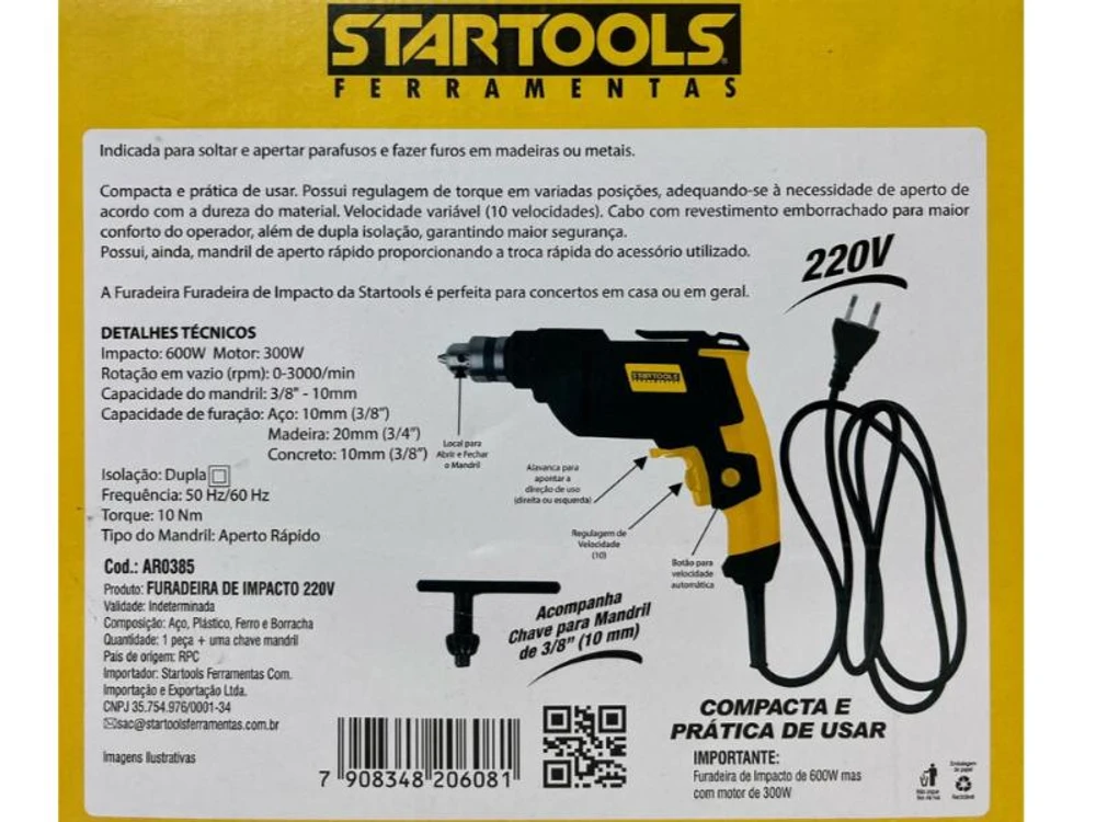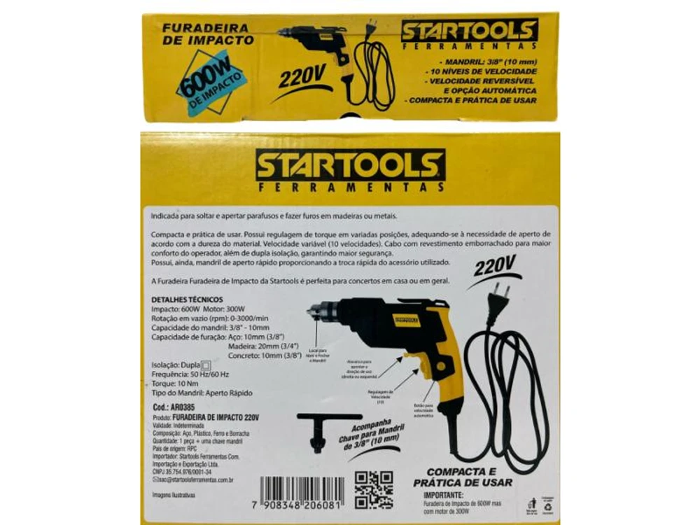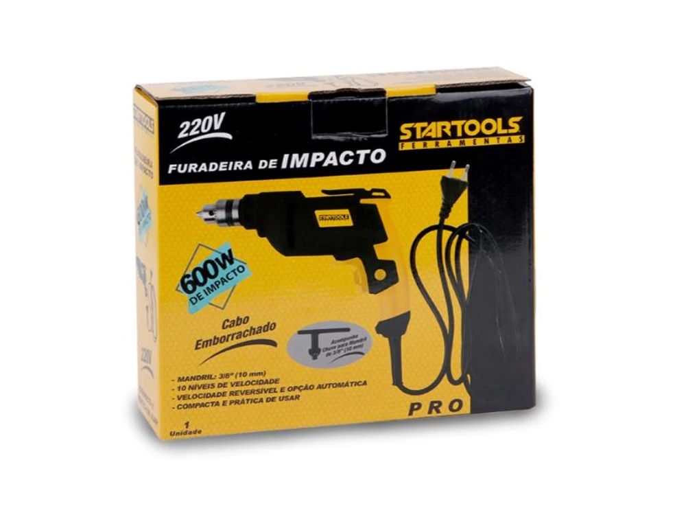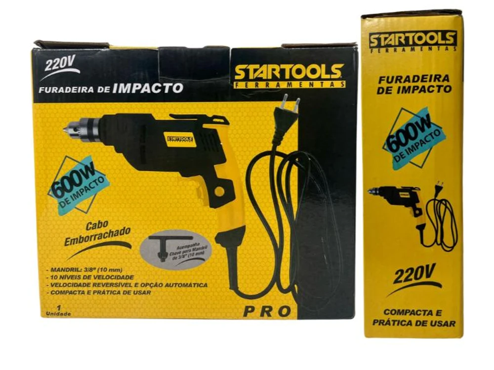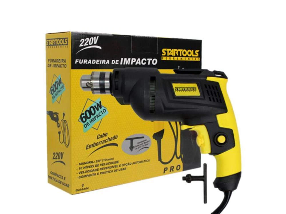 A Furadeira de Impacto Startools de 600W está disponível em duas opções de voltagem: Amarela 220v.
